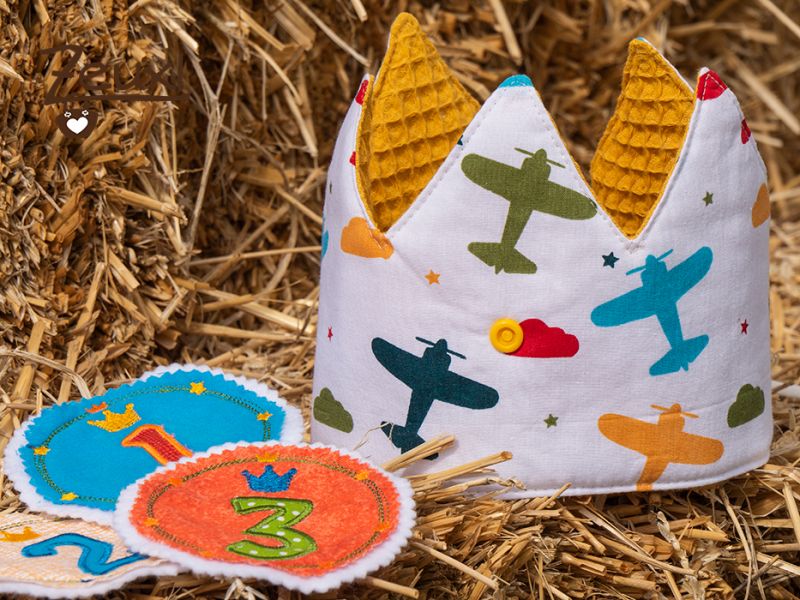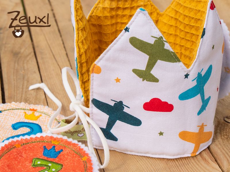 Den Anfang macht die Geburtstagskrone. So eine wollte ich eigentlich schon lange für unseren Buben nähen. Bin irgendwie nicht dazu gekommen und am fünften Geburtstag dachte ich, nun ist sie vielleicht nicht mehr cool genug. Aber denkste, als er die fertige Krone gesehen hatte, war klar, er braucht zum nächsten Geburtstag auf jeden Fall auch noch eine Krone. Bis dahin vergeht noch ein halbes Jahr, warten wir es mal ab.