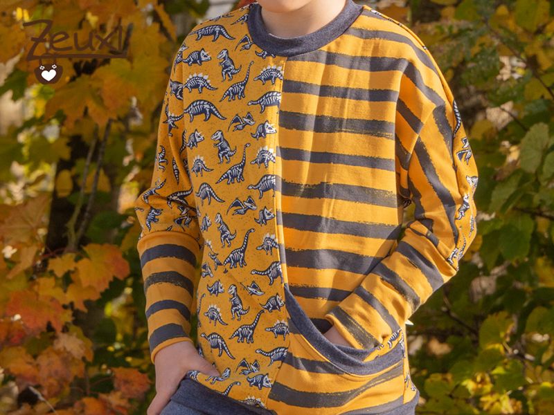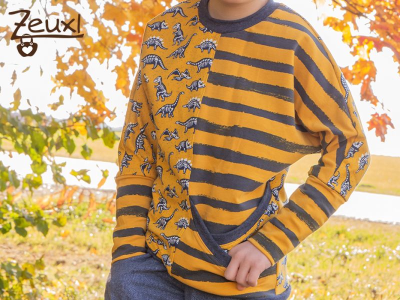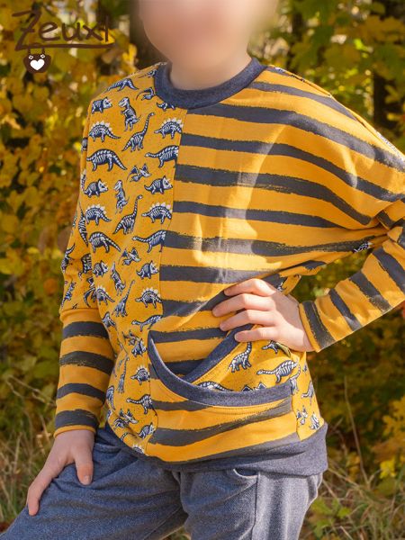 Das Besondere am Pinio-Schnitt ist die tolle Doppeltasche. Der Bub war sofort begeistert davon. Stoffe, Schnitt und vor allem eben die besondere Tasche findet er klasse. Mir gefällt besonders, dass es ein Fledermausshirt ist und mal so ganz aus der Reihe tanzt. Der Pinio hebt sich von der Masse der Pullis/Hoodies ab und bringt frischen Wind in den Kleiderschrank.