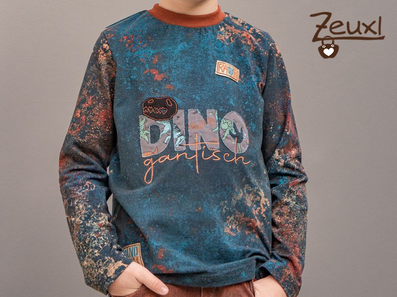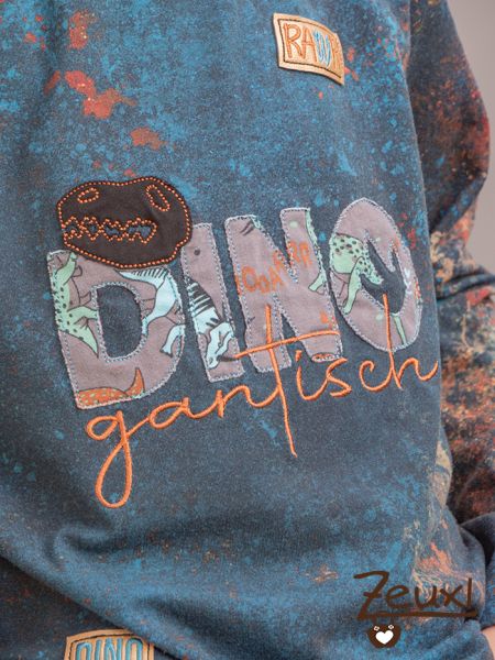 Der Schriftzug geht gut auch für ältere Jungs und sogar mit dem “zu Baby“ Dinostoff findet unser Bub sein Dinoshirt in Herbstfarben richtig prima. Genau genommen ist er von beiden, Shirt und grünem Dino-Pulli total begeistert. Auch hier verwendete ich den Schnitt Basic Shirt von Klimperklein. Beide sind nach dem gleichen Schnitt genäht, mit der gleichen Stickdatei bestickt und doch so anders. Beide werden hier rauf und runter getragen. Wenn er könnte, würde unser Bub nichts anderes mehr anziehen. Von wegen „zu Baby“!