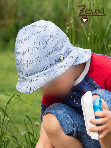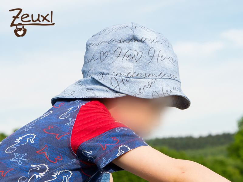 Damit auch mein Herzensmensch den Herzensmenschstoff tragen kann, entstand ein Sommerhut für die wärmeren Tage. Das Schnittmuster ist von Mavibri. Der Sonnenhut BeHütet ist auch ein Freebook. Ich mag den Schnitt so gerne, da er sowohl einen Schutz über den Augen bietet und zudem der Nacken vor der Sonne geschützt wird.