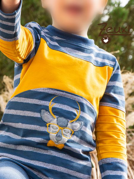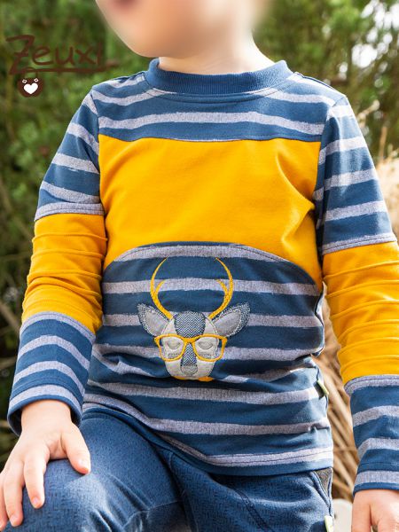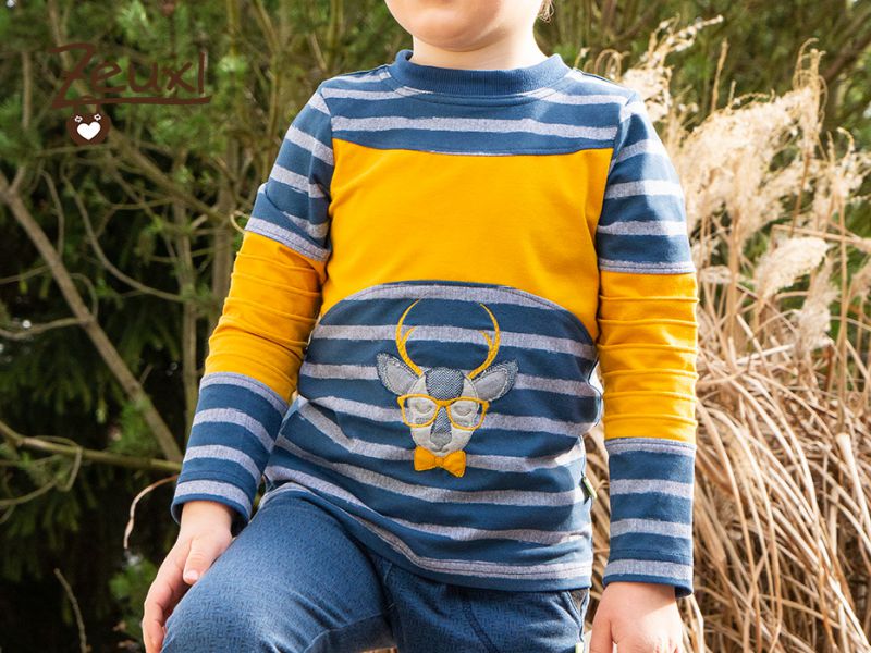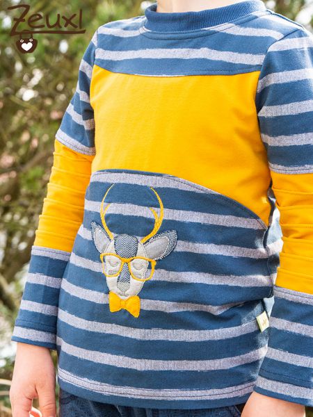 Vorne ziert der witzige Hirsch Joe das Shirt. Ich durfte für die Liebe Nadine von FadenSpiel - Handmade by NB den „Hipster Joe“ probesticken. Ich mag ja Hirsche total gerne und Joe ist mal etwas ausgefallener durch die Brille und seine Schleife, oder sagt man Fliege?