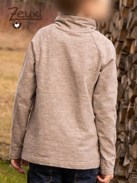 Jetzt, wo jeder schon auf den Frühling lauert, kommt hier noch ein Kuschelpulli. Schnelle, schlichte Kuschelpullis, das war der eigentliche Plan als der Bub sich vor kurzem warme Pullis wünschte. Ganz so schlicht, wie geplant, ist der Pulli nicht geworden, aber dezent, im Sinne von unbunt, schon.