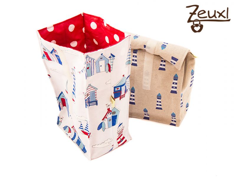 Gedacht ist so eine Lunchbag tatsächlich um darin Essbares zu transportieren. Beispielsweise ein, in eine Papiertüte gewickeltes, Brot, damit es keine Fettflecken hinterlassen kann. Genauso gut sind Apfel oder Banane darin aufgehoben und vor Druckstellen besser geschützt. Auch ein Joghurt inclusive Kühlakku ist vorstellbar. Wenn doch mal was auslaufen sollte ist nicht gleich überall die Bescherung. Innen verwendete ich bei beiden laminierte Baumwolle. So ist die Tasche auswischbar und auch gelegentliches Waschen sollte der Lunchbag nichts anhaben.
