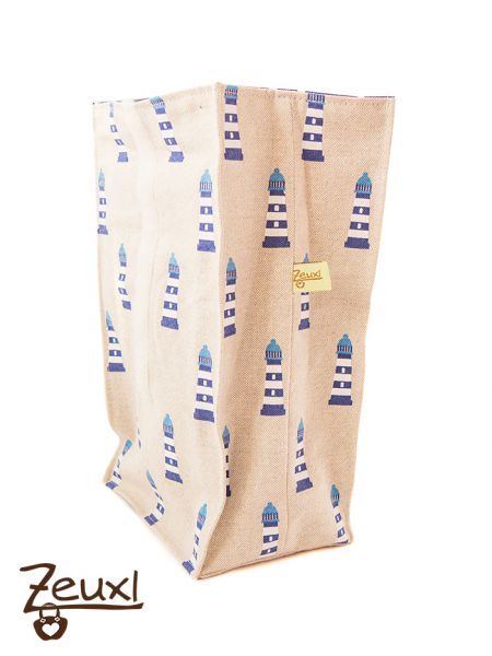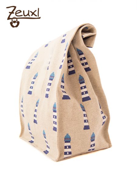 Damit allerdings dieser, ich nenne ihn hier mal Brotzeitbeutel, das ganze Jahr über noch häufig genutzt wird, habe ich auf ein typisches Weihnachts- bzw. Nikolausdesign verzichtet. Meine Cousine bekam einen Beutel mit Leuchttürmen, da sie das Maritime gerne mag. Bei meinem Patenkind habe ich mich für einen der Stoffe entschieden, den ich auch für seinen Leseknochen verwendet hatte.