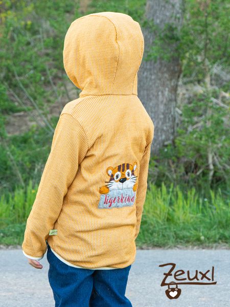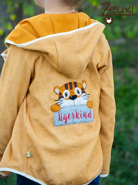 Als Nadine von Fadenspiel – Stickdateien mit Herz Probesticker für den süßen Tiger suchte, wollte er unbedingt etwas mit dem Tiger für sich haben. Diesen Wunsch konnte ich ihm gerne erfüllen. Dabei dachte ich noch, der Tiger passt eher für jüngere Kinder. Aber: Tiger sind gefährlich, hat er mir erklärt, gefährliche Tiere sind total toll und deswegen braucht er den Tiger!