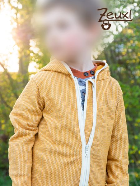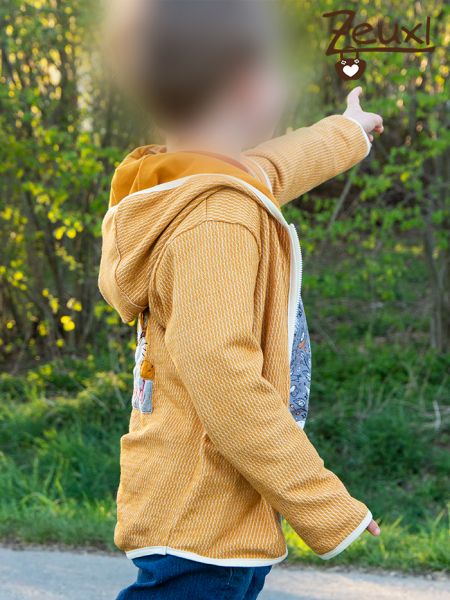 Also gut, dann kommt der Tiger auf eine leichte Weste, äh Jacke, die der Bub sowieso gebraucht hätte. Ich entschied mich für einen leichten (vermutlich) Jacquard und wählte das Fleecejackenschnittmuster von Klimperklein. So eine Jacke hatte ich schon einmal (hier) für ihn genäht. Damals ist sie lange „mitgewachsen“, mal sehen, wie es mit dieser so ist.