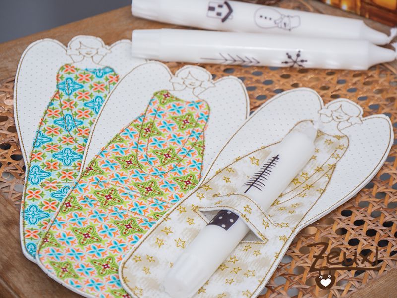 Die Idee mit den Engeln fand ich so schön. Sie sind recht fix gestickt und je nachdem, welcher Stoff für das Kleid des Engels gewählt wird, erscheint der Engel eher festlich elegant oder auch bunt und modern.