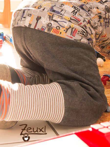 Obwohl ich für unseren Buben noch immer gerne einfache Pumphosen und schlichte Shirts nähe, probiere ich auch weiter Schnitte aus, die etwas mehr hermachen. Das meine ich überhaupt nicht abwertend, aber es macht noch mehr Spaß nicht nur mit den Stoffdesigns, sondern eben auch mit den Schnitten Abwechslung in den Kleiderschrank des Buben zu bringen. Bei Jungs ist die Auswahl ja ohnehin schon eingeschränkter.