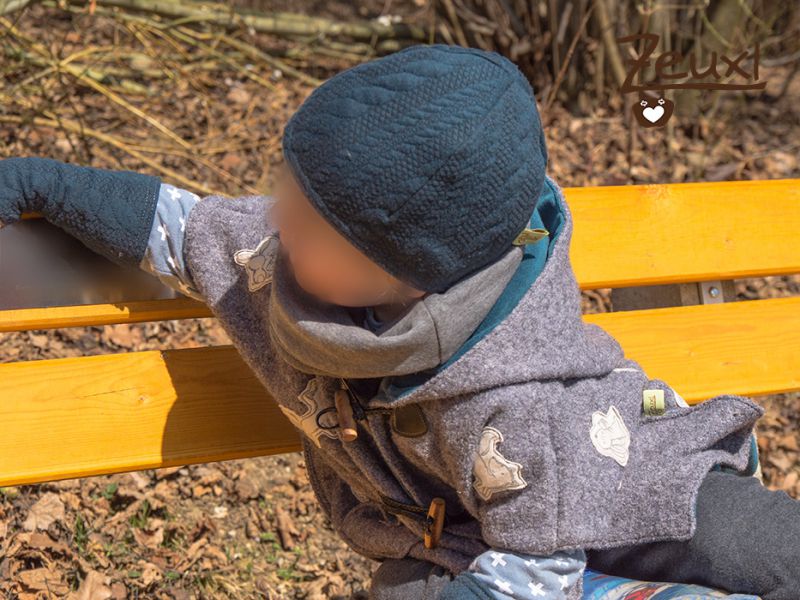 Mit diesem Set und unserm Waldtiere Walkwichtel-Poncho sind wir für das Wetter im Moment super gerüstet. Wenn Wind (natürlich nicht der böse, eiskalte Wind!) dann Mütze, Loop und Handstulpen an. Wenn mild, dann kann das eine oder andere Teil in Mamas Tasche verschwinden. Denn eines musste ich leider feststellen, trägt er die Softshelljacke (egal ob gekauft oder selbst genäht, siehe hier) ist der Bub nachher jedes Mal leicht feucht vom Schwitzen. Da geht halt nur Jacke an oder aus, zu oder auf. Beim Walkwichtel ist mir das mit dem Schwitzen noch nie aufgefallen, der Poncho ist eben viel besser belüftet!