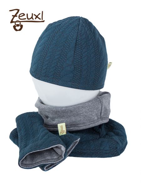 Als mir klar war, dass das Ida Freebook die Lösung für mein „Walkwichtel-Problemchen“ ist machte ich mich direkt auf die Suche nach dem vergrabenen Stoff. Da ich Mütze, Loop und Handstulpen mit kuschelweichen, grauen Bio-Nickistoff füttern wollte, durfte der Zopfmusterstoff die Außenseite zieren. Wie gesagt, das Muster ist schön und zufälligerweise passt die Farbe auch sehr gut zum Waldtiere Walkwichtel-Poncho.