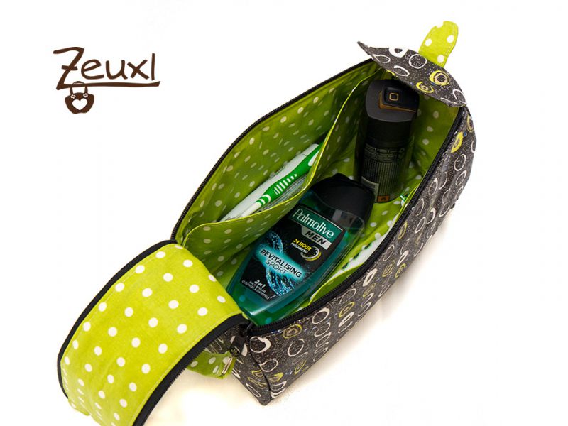 Ein Grund warum ich gerade dieses Schnittmuster gewählt habe, ist der Doppelreißverschluss mit dem der Kulturbeutel verschlossen wird. Somit ist die Tasche schön weit offen und Mann hat einen guten Überblick. Außerdem wird die Verschlussklappe noch mit einem Klettband befestigt.
