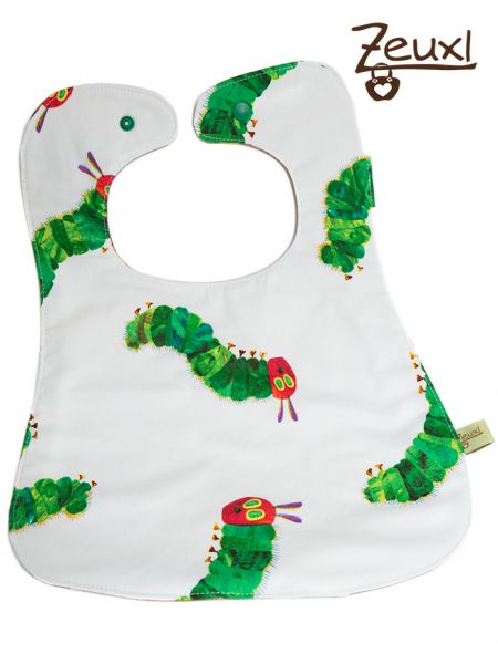 Wenn es also nasser wird macht da der dritte Latz, der aus drei Lagen besteht mehr Sinn. Vorne besagter Raupe Nimmersatt-Baumwollstoff, als Zwischenschicht Frottee und für Hinten laminierte Baumwolle.