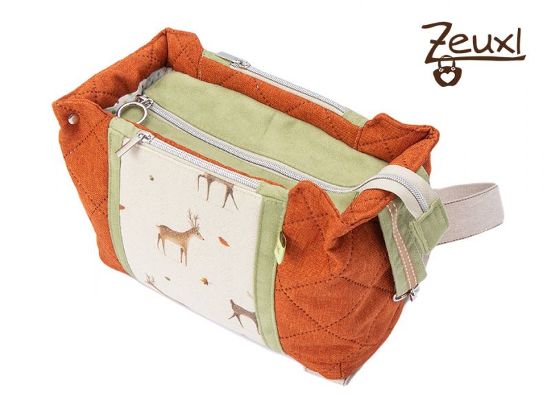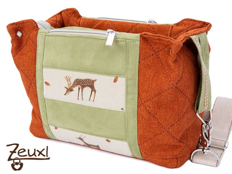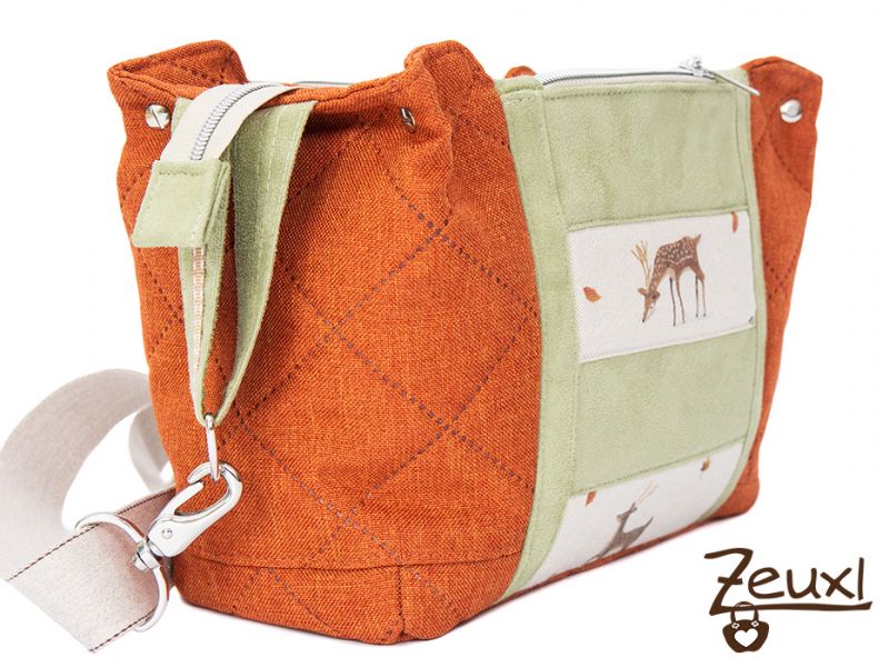 Wie gerufen bot mir Nicole von Monja an, ihren neuen Taschenschnitt Larissa, wobei es genau genommen zwei Taschen sind, probe zu nähen. So war klar, die neue Herbst-Tasche wird eine Little Larissa, die kleinere der beiden Larissas. Sofort war mir klar welchen Stoff ich verwenden würde. Der Canvas mit den kleinen Rehen wartete schon eine geraume Zeit auf seinen Einsatz und der Steppstoff, sowie das grüne Kunstleder, wollten unbedingt die Kombistoffe dafür sein ;-)