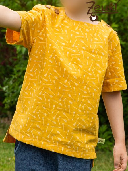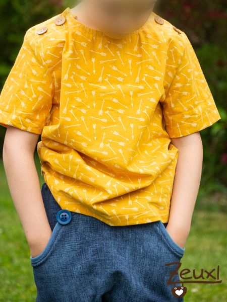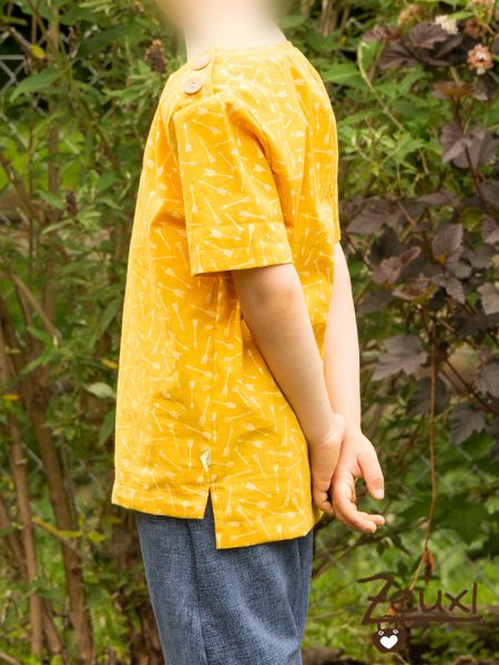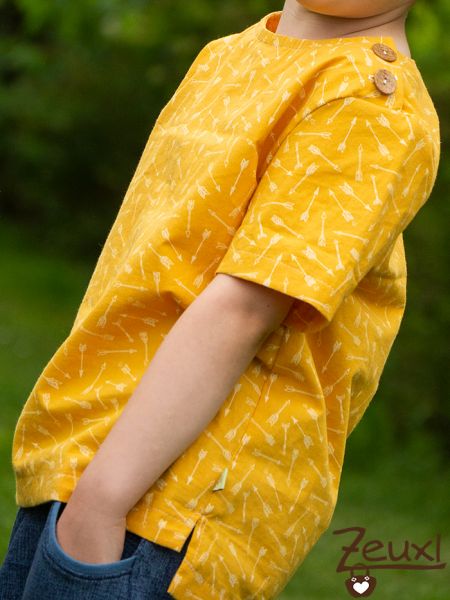 An heißen Sommertagen ist leichte Baumwollkleidung genau das Richtige auf der Haut und der Sommer wird demnächst durchstarten, da bin ich mir sicher. Das erste Knopfhemd, das ich zeige, ist deswegen aus ganz leichter Baumwolle mit Pfeilen drauf. Gerade für so leichte Stoffe ist der Schnitt perfekt geeignet. Ich mag besonders, dass aus verschiedenen Optionen gewählt werden kann und so optisch unterschiedliche Hemden entstehen können. Hier ist es die Variante mit den Knopfleisten an den Schultern.