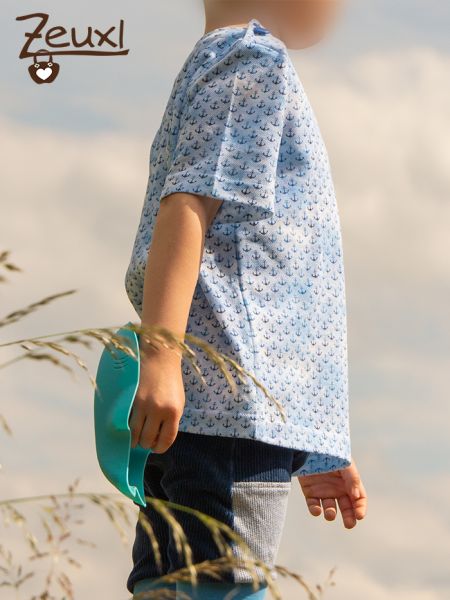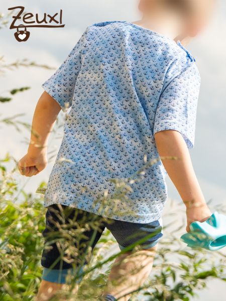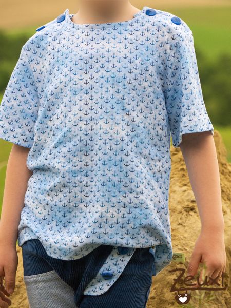 Zum Knopfhemd trägt der Bub eine Quaffel in kurz. Wobei ich bei der Hose auch den Ankerstoff mit verwendet hatte.