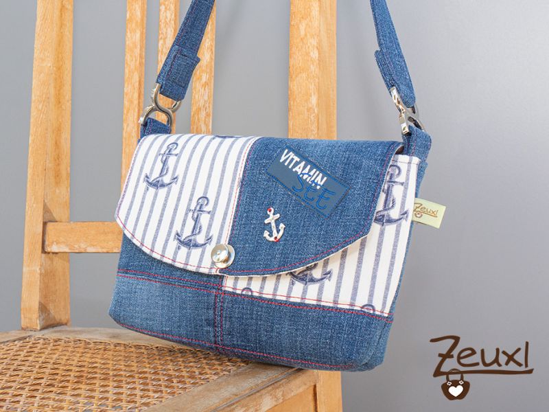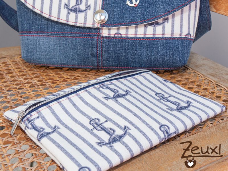 Nun bin ich kein Upcycling-Profi aber Jeanshosen „sammle“ ich besonders gerne um sie weiter zu verwerten. Noch bevor ich die ausrangierte Jeans einer Kollegin in meine Jeans-Upcycling-Kiste im Keller packen konnte, fand sich in genau dieser der perfekte Partner für den Ankerstoff und es bot sich super an, dieser Jeanshose in diesem Projekt ein neues Leben einzuhauchen.