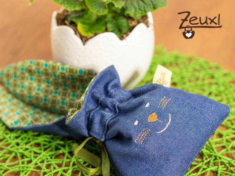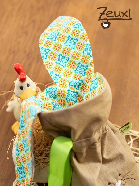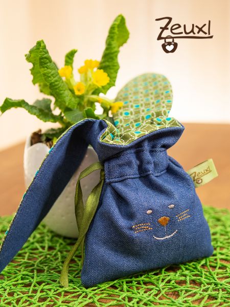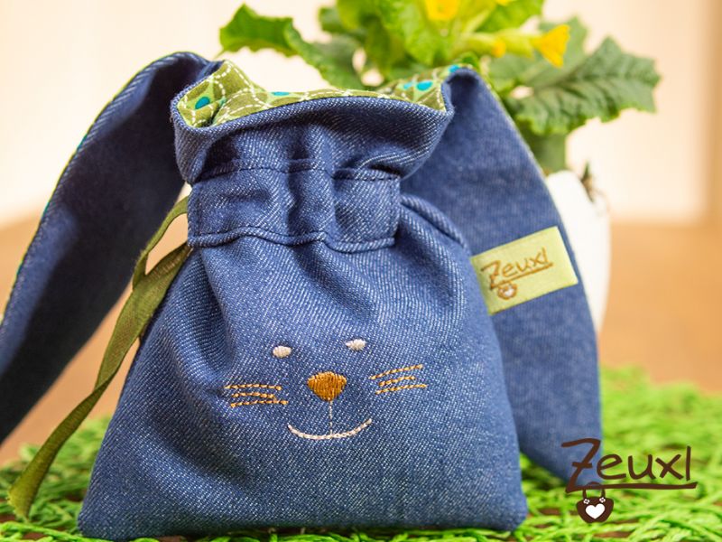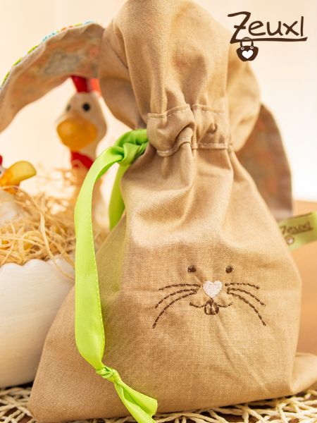 Es sind süße kleine Beutelchen, um darin eine nette Kleinigkeit zu Ostern zu verschenken. So passen in das kleinere Säckchen prima zwei gefärbte Eier oder diverse, süße Leckereien. Der größere Beutel bietet entsprechend mehr Platz.