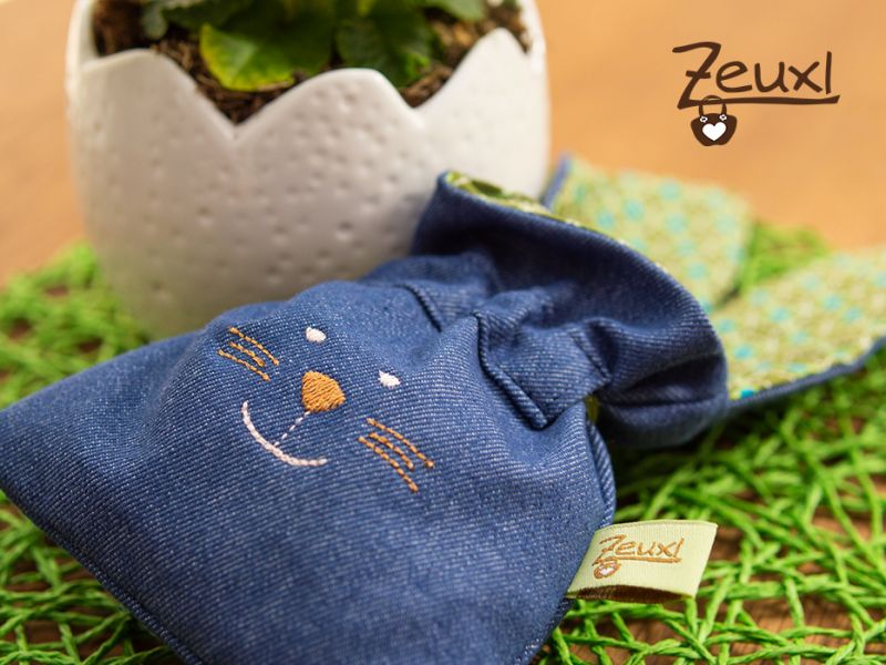 Das Hasengesicht ist in zwei Größen mit Herznase und Zähnchen und ebenso in zwei Größen mit runder Nase und ohne Zähne stickbar.