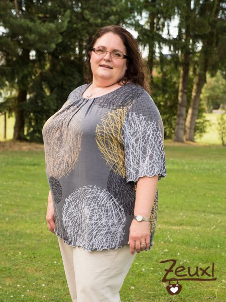 Dann habe ich es einfach gewagt und das für mich neue Material und den neuen Schnitt getestet. Ich kann nur bestätigen, der Stoff ist so leicht und angenehm auf der Haut und war auf einer Feier (für die ich das Shirt genäht hatte) an einem heißen Sommertag genau die richtige Wahl. Nur die fließende Qualität mag ich persönlich nicht so gerne. Da habe ich immer das Gefühl, meine üppigen „Pölsterchen“ zeichnen sich besonders gut und dementsprechend ungünstig ab.