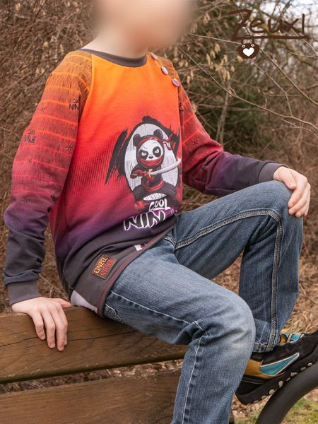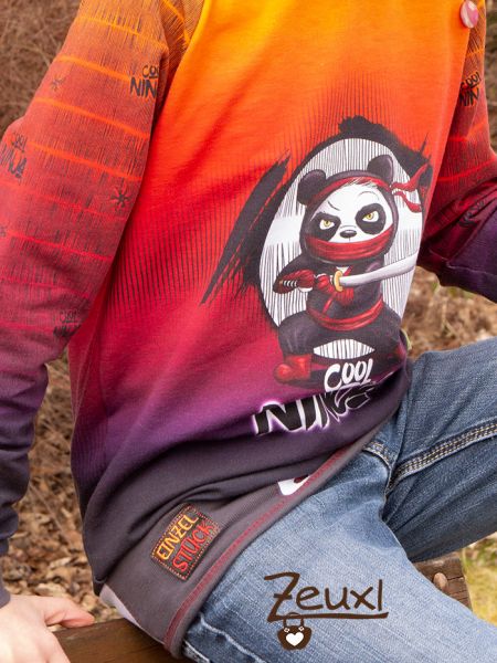 Nach wie vor ist die Ninja-Begeisterung ungebrochen und noch mag er es farbenfroh. Deswegen wollte ich nicht noch länger warten um diesen doch farblich sehr eigenwilligen Stoff zu vernähen. Ich nenne das Ergebnis den Ninja im Sonnenuntergang.