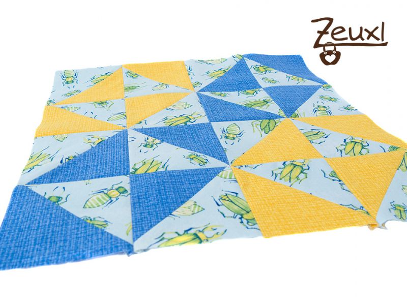 Die Auswahl der Stoffe hat auch wieder ewig gedauert, denn lange war ich mir unsicher, ob die Käfer auf den relativ kleinen Stücken überhaupt gut aussehen. Jedoch habe ich ja vor, diese als verbindendes Element auf jedem Block zu verwenden. Also durften die Käfer auch diesmal wieder mit dabei sein (als Hintergrundstoff) und die beiden kräftigeren Farben aus dem Januar- und Februarblock sind die Hauptstoffe.