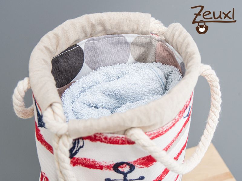 Denn genau das war mein Ziel. Ein Beutel, in dem genug Platz für die gewünschten Dinge ist, der aber selbst nicht viel Platz in der Garderobe verbraucht und gut verschlossen ist, damit nichts rausfallen kann. Deswegen nutze ich den Tunnelzug ausschließlich für den Verschluss des Mien Büdel. Getragen und aufgehängt wird der Beutel an den Haltegriffen. Wobei ich die Schlaufen für die Schnürung nach Turnbeutelart, wie in der Anleitung beschrieben, mit eingenäht habe. So kann der Beutel, wird eine längere Kordel eingezogen, auch so wie ursprünglich gedacht genutzt werden.