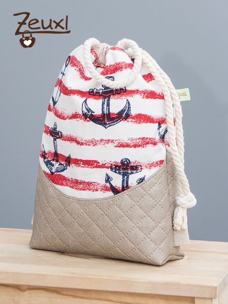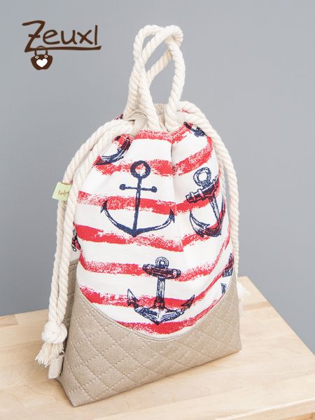 Ich nähte dafür einen Beutel, genauer gesagt Mien Büdel von Waterkant-Lieblingsstücke, eine Art Turnbeutel. Ja, ich hab doch tatsächlich einen Turnbeutel genäht, wo ich doch Turnbeutel ganz, ganz schrecklich finde und bisher immer super Alternativen (hier und auch hier) gefunden hatte. Aber für diesen Zweck fand ich genau dieses Schnittmuster sehr passend, allerdings habe ich die typische Turnbeutelschnürung abgeändert.