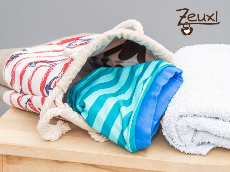 Gerade letzte Woche kam mir dies wieder mal zugute. Jedes Kind, das an den Nachmittagen in der Schule bleibt, soll bitte eine Tasche mit Badekleidung, Handtuch und Sonnencreme in der Garderobe bereithalten, damit bei schönem Wetter im Garten geplatscht werden kann. Klasse Idee, finde ich. Ich hatte alles Benötigte, also Schnitt und Material, vorrätig Zuhause und konnte schnell loslegen.