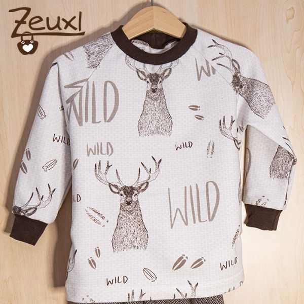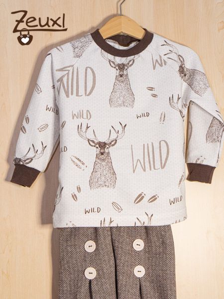 Den wirklich ganz weichen French Terry mit den wilden Hirschen drauf streichle ich schon eine ganze Weile und konnte mich nicht entscheiden was daraus werden sollte. Fast hätte ich daraus einen Loop für mich genäht, aber als Pulli für den kleinen Mann gefällt er mir auch sehr gut.