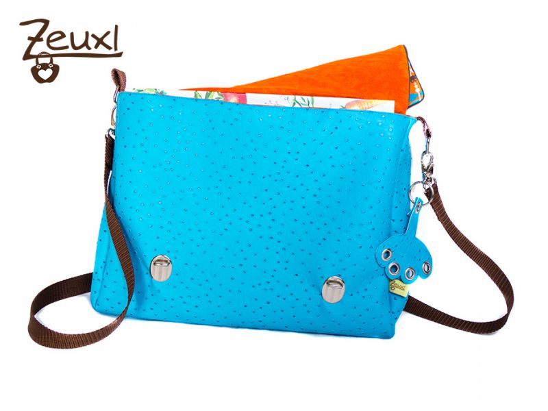 Diesmal ohne Schlüsselanhänger. Dafür hängt außen noch ein Taschenbaumler aus dem Kunstleder dran. Ich hab versucht, die Form der Blumen aufzugreifen und Ösen reingemacht.