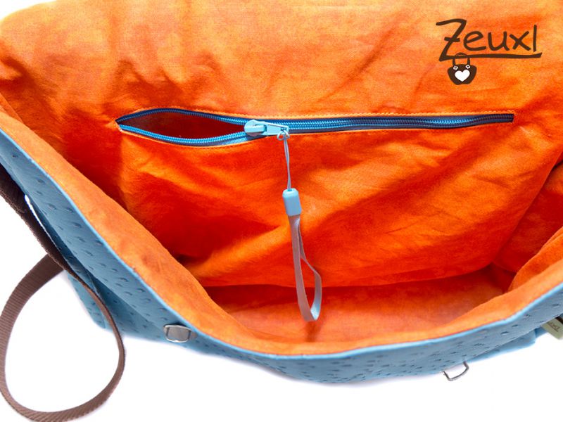 Innen noch mehr oranger Stoff und eine Reißverschlusstasche. Ich mag Taschen ganz ohne Innenfach nicht so gerne – etwas Ordnung soll schon möglich sein.