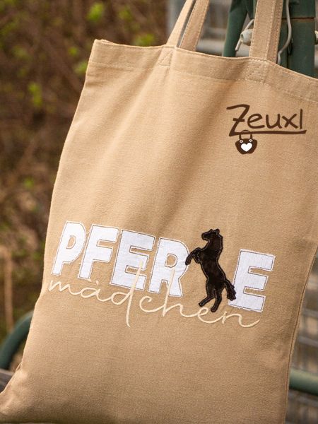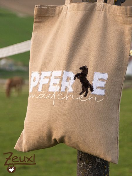 Damit die Tasche der Pferdebesitzerin auch gefällt, hab ich mich entschlossen sie mit Pferdemotiven zu verschönern. Praktischerweise gibt es bei Fadenspiel – Stick- und Plotterdateien mit Herz eine neue Stickdatei, die ich mit probesticken durfte. Das Pferdemädchen Statement passt einfach perfekt. Die Datei gibt es ab sofort und in verschiedenen Größen sowie Dateiformaten im Shop.