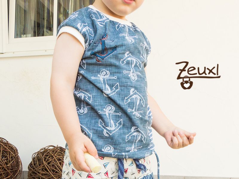 Dank des Bündchenstreifens, der am leicht überschnittenen Armausschnitt angenäht wird, deckt das Tilt-Shirt die Schultern doch etwas ab. Was einerseits, wie ich finde, optisch schöner wirkt und andererseits die Haut an den Schultern vor der Sonne schützt. Ganz klar, dass ich versuche die empfindlichere Kleinkindhaut nicht zu extrem der Sonne auszusetzen. Deswegen halten wir uns bevorzugt im Schatten auf und nutzen auch (in Masen) Sonnenschutzcreme.