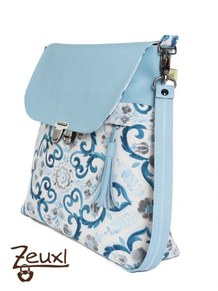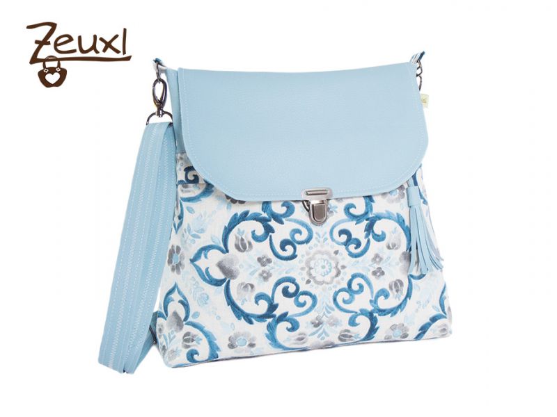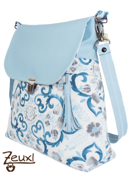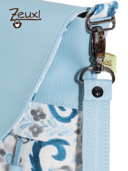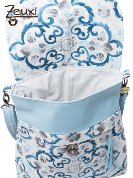 Bei der Abendliebe, dem neuen Schnitt von Unikati – Jede Naht ein Unikat, ist es mir genau so ergangen. Ich wollte unbedingt eine helle, freundliche Tasche. Den Dekostoff kaufte ich bei Snapply und ich ertappte mich schon dabei, diesen mit grauem Kunstleder zu kombinieren zu wollen. Das wäre die Variante für mich gewesen. Da ich die Tasche gar nicht unbedingt selbst behalten „muss“, legte ich einfach mal das hellblaue Kunstleder dazu und es passte perfekt. Dieses Kunstleder ist als kleineres Stück, aus der „Verführungskiste“ an der Kasse im Stoffladen, sozusagen in letzter Minute bei mir gelandet.