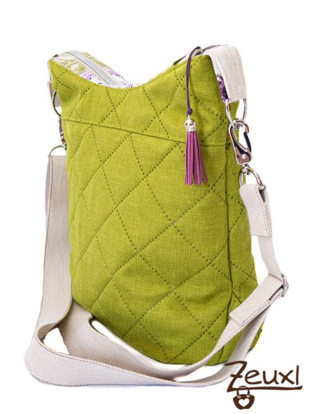 Durch die Form des Taschenbodens und durch die Falten an Vorder- und Hinterteil bietet die Tinker Bag einiges an Platz ohne klobig zu wirken. So kann sie super als Alltagstasche verwendet werden. Damit ich sie sowohl über der Schulter als auch quer tragen kann, verwendete ich einen langen Gurt zum Verstellen, den ich als Gurtband gekauft und nicht wie im E-book beschrieben genäht hatte.