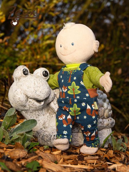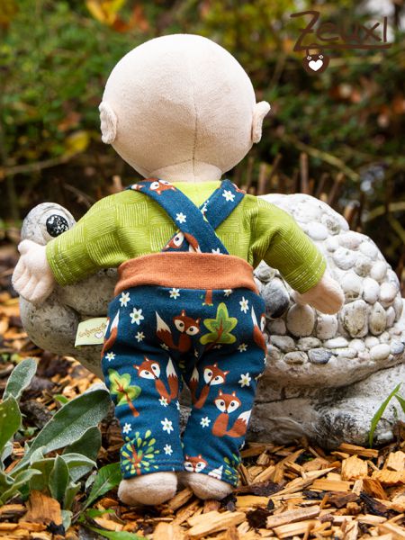 Die Stoffretter und der Dorfzwerg haben sich nicht nur einen Schnitt für Hose, Shirt, Mütze und Halstuch (wie hier gezeigt) ausgedacht, sondern noch eine Reihe weiterer Schnitte. Diese wirklich süße Latzhose ist auch darunter. Der Stoff mit den Füchsen ist einer der ersten Stoffe überhaupt, die ich damals für den Buben gekauft und vernäht hatte. Auch am Tunichtgut gefällt er mir wirklich gut. Dazu ein Shirt in grün. Zugegeben, die Latzhose ist etwas aufwendiger zu nähen, aber es lohnt sich würde ich meinen.