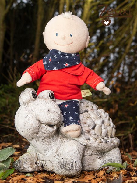 Da der Bub Sterne gerne mag, sollte natürlich auch der Tunichtgut ein Sternenoutfit bekommen. Gut, dass ich noch einen Rest von diesem Sternenstoff hatte.