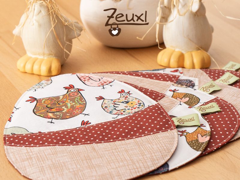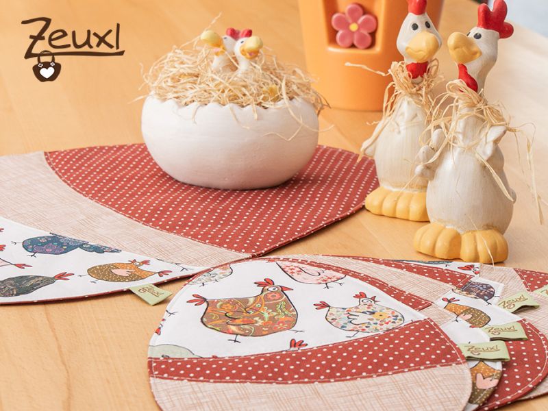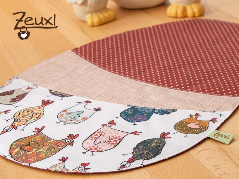 So wurde aus dem Hühnerstoff von Buttinette ein großer Eiki mit passenden kleinen Mug Rugs. Obwohl der bunte Hühnerhaufen scheinbar zu recht vielen Farben zu passen scheint, ist es mir nicht gelungen, passende Kombistoffe in meinen Vorräten zu finden. So ergänzte ich die Hühnerschar mit zwei Stoffen aus dem örtlichen Stoffladen. Einkaufen vor Ort, so richtig in echt mit anfassen und Stoffe aneinander halten, macht durchaus Sinn, auch wenn ich wirklich vieles und gerne online bestelle.
