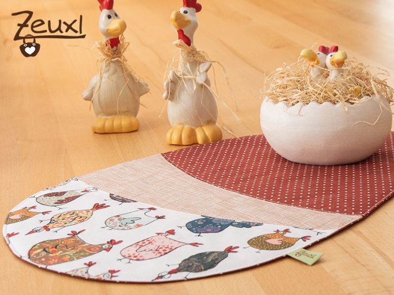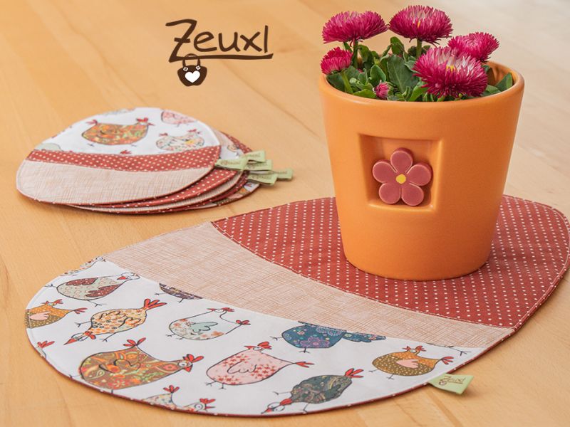 Das Eiki Tischset, nach meinem Eikischnittmuster, dient nun also als schöne Tischmitte im Personalraum und die kleinen Eikis liegen auf dem großen Schreibtisch bereit. So können darauf Gläser, Flaschen und Tassen abgestellt und lästige Tropfränder auf der Tischplatte vermieden werden.