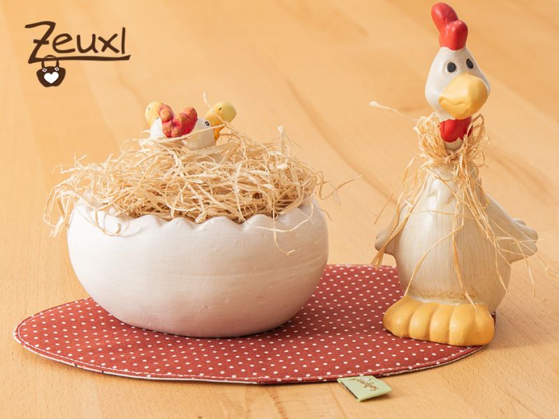 Diese verrückten Hühner sind zu witzig. Daraus mussten einfach Eikis werden, das wusste ich sofort und mir war auch klar welchen Tisch sie bevölkern sollten. Unser Tisch im Personalraum sowie der Schreibtisch bei mir in der Arbeit sind nun „verösterlicht“. Der bunte Hühnerhaufen passt dafür einfach zu gut. Ich hoffe meine Kolleginnen mögen es mir verzeihen und die männlichen Kollegen fühlen sich nicht ausgegrenzt.
