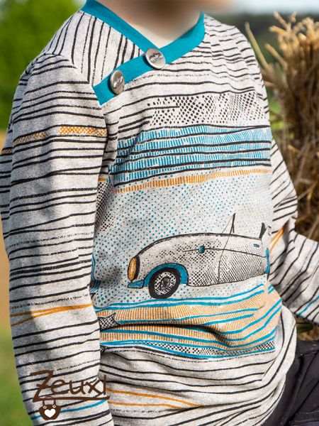 Klar gibt es und gab es auch Zeiten, da findet der Bub alleine eine schöne Beschäftigung. mal bastelt oder malt er, spielt Lego oder „liest“ seine Bücher. Ein andermal jagt er im Garten Verbrecher oder buddelt einen Tunnel durch den Sandberg. Manchmal erzählt er mir aufregende Fantasiegeschichten und ist dabei ganz in seinem Element. Damit er bei diesem unsteten Wetter gut angezogen ist, mussten noch Langarmshirts her. Das Longsleeve von Mamasliebchen ist dafür eines unserer Favoriten-Schnittmuster. Ein Beispiel dafür ist hier zu finden.
