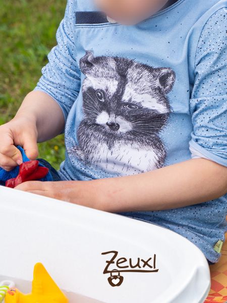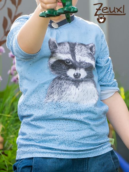Für ein weiteres Longsleeve holte ich einen anderen Stoffschatz aus dem Schrank. Der kleine Waschbär (ebenfalls von Lillestoff) ist doch wirklich zu putzig. Dieses Shirt ziert ein silberfarbener Knopf aus der Knopfsammlung meiner Oma, die mir schon das eine oder andere Mal behilflich war, ein Kleidungsstück des Buben zu vervollständigen.