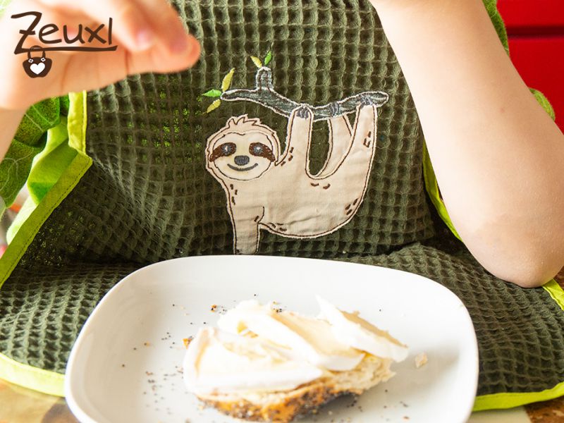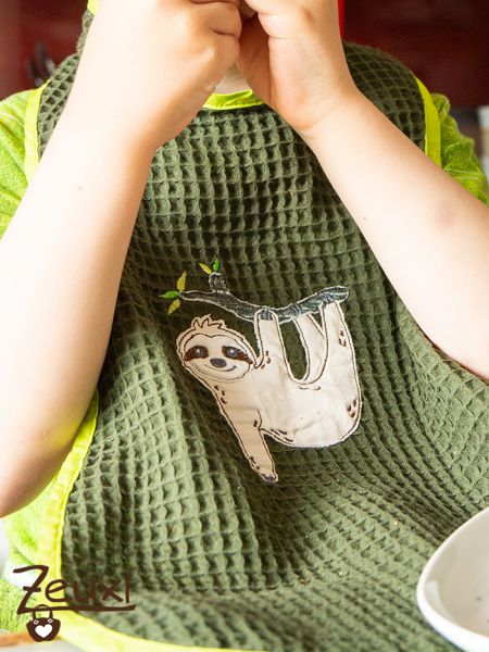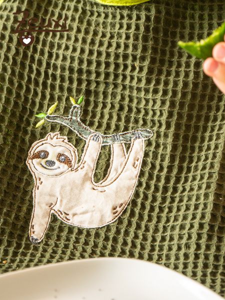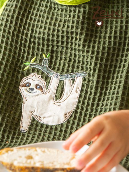 Hier ein leichter Sommerlatz aus aus Waffelpique. Verschönert wurde er mit einer tollen neuen Stickdatei von Fadenspiel. Ich durfte das Faultier Justus für die liebe Nadine probesticken und bin begeistert. Justus ist ein echt süßer Kerl.
