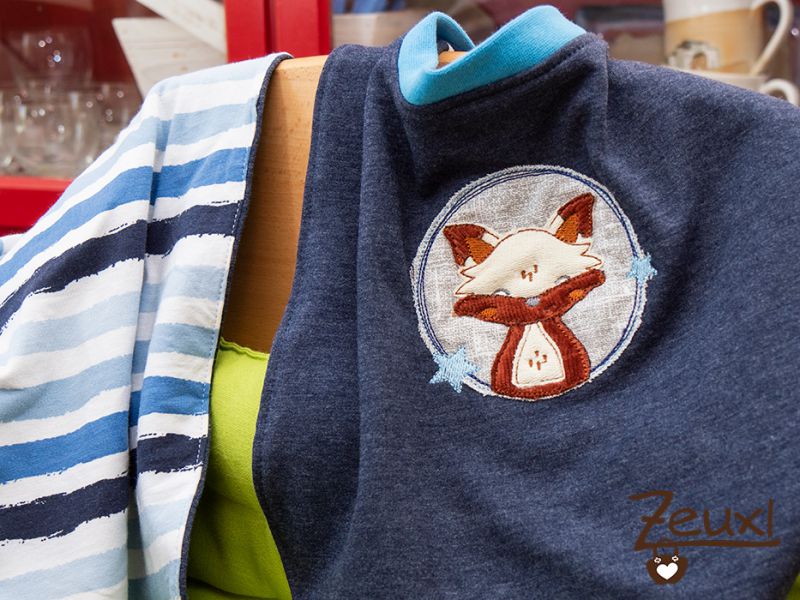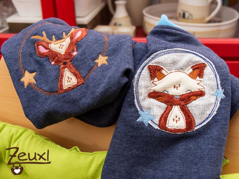 Der Fuchs ist auf einen Latz nach dem Schnittmuster von Miss Granny gestickt und für das Reh hatte ich das Schnittmuster für uns passend verlängert, was auch super funktioniert hat.