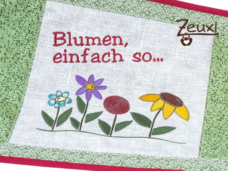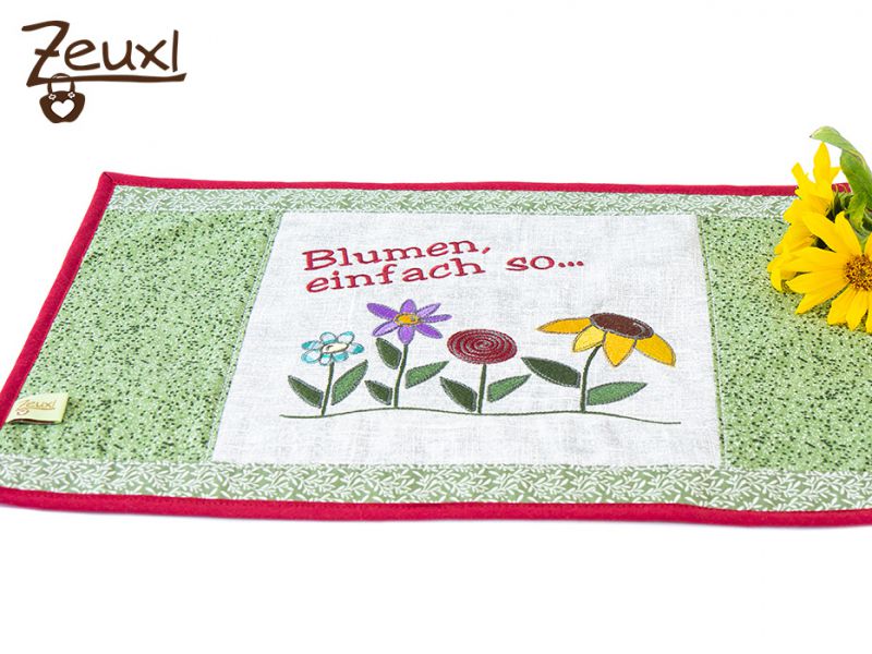 Auch hier fand ich zu den Blumen noch einen kleinen Spruch passend. Da ich mir offen halten wollte zu welcher Gelegenheit ich das Tischset verschenken kann, wurde es „Blumen, einfach so“. Ob als Geburtstagsgeschenk oder Dankeschön, sicher wird sich die passende Person und Gelegenheit finden.