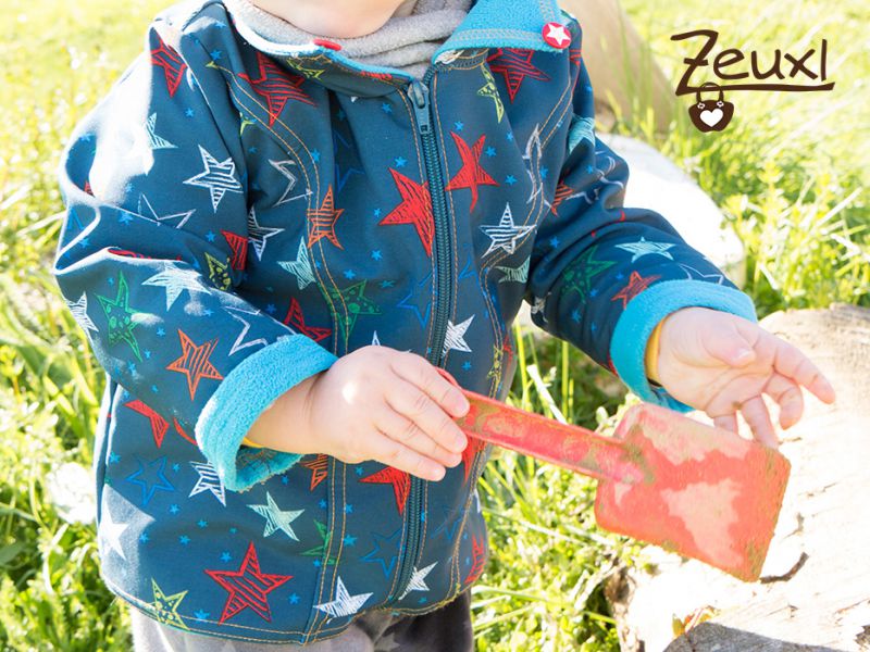 Im Stoffladen vor Ort bin ich auf diesen Softshell Stoff gestoßen und bei Schnabelina gibt es einen tollen Schnitt für JaWePu (Jacke, Weste, Pullover). Also Stoff gekauft und ausprobiert.