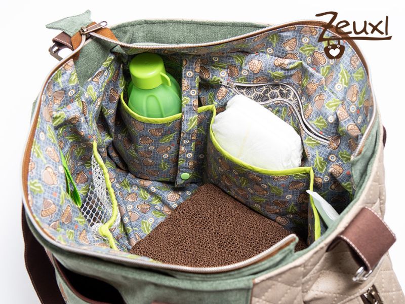 Außerdem gibt es einen Schlüsselfinder, ein weiteres Band um zum Beispiel den Schnuller zu befestigen und noch ein zusätzliches, kleines Täschlein für Kleinzeug. Verschlossen wird die Tasche mit einem Reißverschluss, der sich ganz öffnen lässt und somit ein guter Blick in die Tasche möglich ist und alle Dinge bequem erreichbar sind.